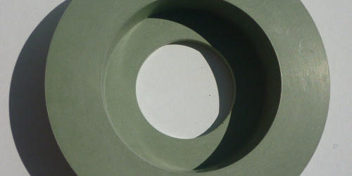 Para abrillantar filos o aristas de vidrio previamente matado con muela diamantada.